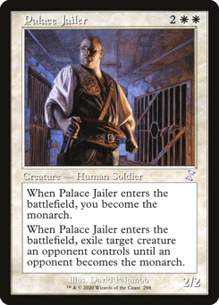 When this creature enters, you become the monarch. When this creature enters, exile target creature an opponent controls until an opponent becomes the monarch.