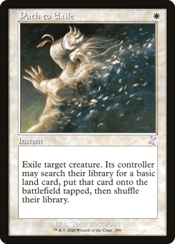 Exile target creature. Its controller may search their library for a basic land card, put that card onto the battlefield tapped, then shuffle.