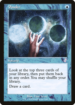 Look at the top three cards of your library, then put them back in any order. You may shuffle. Draw a card.