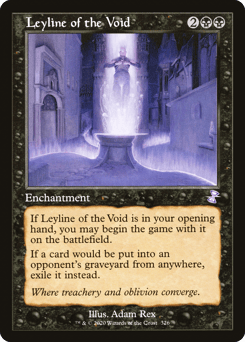 If this card is in your opening hand, you may begin the game with it on the battlefield. If a card would be put into an opponent's graveyard from anywhere, exile it instead.