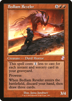 This spell costs {1} less to cast for each instant and sorcery card in your graveyard. Prowess (Whenever you cast a noncreature spell, this creature gets +1/+1 until end of turn.) When this creature enters, discard your hand, then draw three cards.