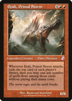 Whenever Etali attacks, exile the top card of each player's library, then you may cast any number of spells from among those cards without paying their mana costs.