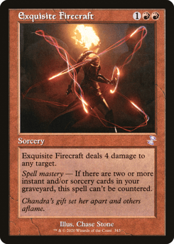 Exquisite Firecraft deals 4 damage to any target. Spell mastery — If there are two or more instant and/or sorcery cards in your graveyard, this spell can't be countered.