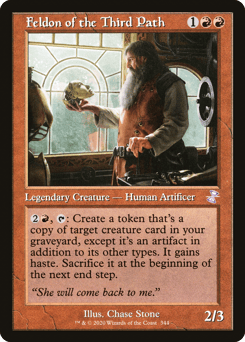 {2}{R}, {T}: Create a token that's a copy of target creature card in your graveyard, except it's an artifact in addition to its other types. It gains haste. Sacrifice it at the beginning of the next end step.