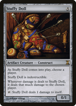 Indestructible As this creature enters, choose a player. Whenever this creature is dealt damage, it deals that much damage to the chosen player. {T}: This creature deals 1 damage to itself.