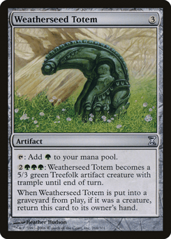 {T}: Add {G}. {2}{G}{G}{G}: This artifact becomes a 5/3 green Treefolk artifact creature with trample until end of turn. When this artifact is put into a graveyard from the battlefield, if it was a creature, return this card to its owner's hand.