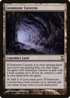 If this card is in your opening hand and you're not the starting player, you may begin the game with Gemstone Caverns on the battlefield with a luck counter on it. If you do, exile a card from your hand. {T}: Add {C}. If Gemstone Caverns has a luck counter on it, instead add one mana of any color.