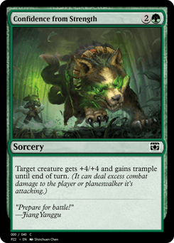 Target creature gets +4/+4 and gains trample until end of turn. (It can deal excess combat damage to the player or planeswalker it's attacking.)