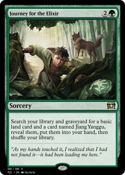 Search your library and graveyard for a basic land card and a card named Jiang Yanggu, reveal them, put them into your hand, then shuffle.