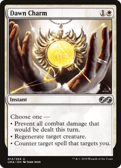 Choose one — • Prevent all combat damage that would be dealt this turn. • Regenerate target creature. • Counter target spell that targets you.