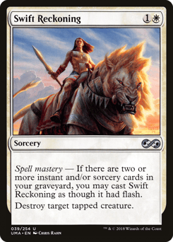 Spell mastery — If there are two or more instant and/or sorcery cards in your graveyard, you may cast this spell as though it had flash. (You may cast it any time you could cast an instant.) Destroy target tapped creature.