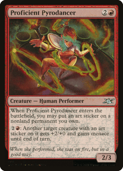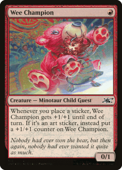 Whenever you place a sticker, this creature gets +1/+1 until end of turn. If it's an art sticker, instead put a +1/+1 counter on this creature.