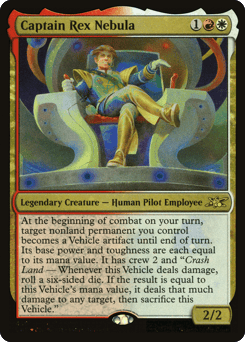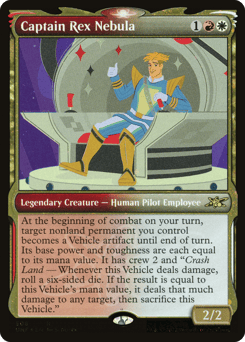 At the beginning of combat on your turn, choose target nonland permanent you control. Until end of turn, it becomes a Vehicle artifact with base power and toughness each equal to its mana value, and it gains crew 2 and "Crash Land — Whenever this Vehicle deals damage, roll a six-sided die. If the result is equal to this Vehicle's mana value, sacrifice this Vehicle, then it deals that much damage to any target."