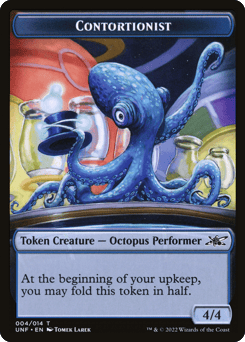 When D00-DL, Caricaturist enters, create a 4/4 colorless Sketch creature token, which you have fifteen seconds to draw. The token has flying if it has wings in its art. The same is true for first strike and a sword, vigilance and a shield, menace and mean eyes, trample and horns, deathtouch and claws, lifelink and fangs, and haste and footwear.