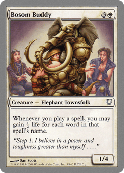 Whenever you cast a spell, you may gain ½ life for each word in that spell's name.