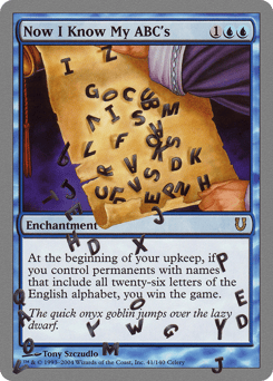 At the beginning of your upkeep, if you control permanents with names that include all twenty-six letters of the English alphabet, you win the game.