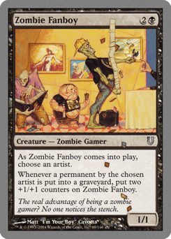 As this creature enters, choose an artist. Whenever a permanent with art by the chosen artist is put into a graveyard, put two +1/+1 counters on this creature.