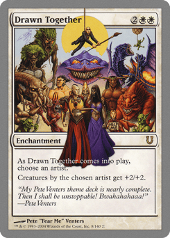 As this enchantment enters, choose an artist. Creatures with art by the chosen artist get +2/+2.