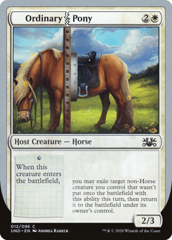 When this creature enters, you may exile target non-Horse creature you control that wasn't put onto the battlefield with this ability this turn, then return it to the battlefield under its owner's control.