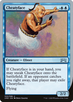 If Cheatyface is in your hand, you may sneak Cheatyface onto the battlefield. If an opponent catches you right away, that player may exile Cheatyface. Flying