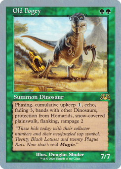 Phasing, cumulative upkeep {1}, echo {G}{G}, fading 3, bands with other Dinosaurs, protection from Homarids, snow-covered plainswalk, flanking, rampage 2