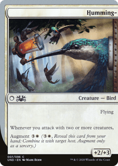 Flying Whenever you attack with two or more creatures, Augment {3}{W} ({3}{W}, Reveal this card from your hand: Combine it with target host. Augment only as a sorcery.)