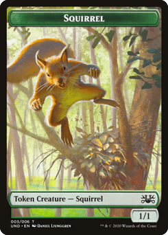 {1}{G}: Reveal a card in your hand, covering the artist credit. Target opponent guesses the artist. If they guess wrong, create a 1/1 green Squirrel creature token.