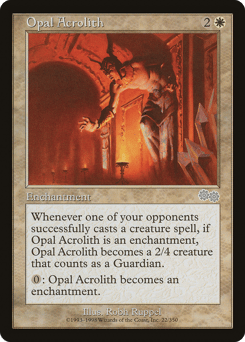 When an opponent casts a creature spell, if this permanent is an enchantment, it becomes a 2/2 Gargoyle creature with flying.