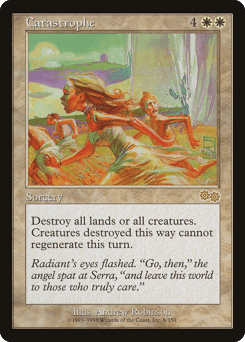Destroy all lands or all creatures. Creatures destroyed this way can't be regenerated.