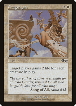Target player gains 2 life for each creature on the battlefield.