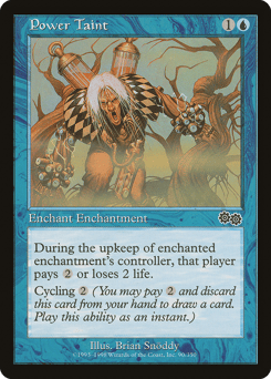 Enchant enchantment At the beginning of the upkeep of enchanted enchantment's controller, that player loses 2 life unless they pay {2}. Cycling {2} ({2}, Discard this card: Draw a card.)