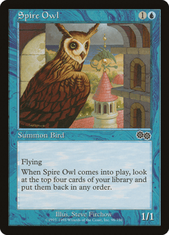 Flying When this creature enters, look at the top four cards of your library, then put them back in any order.