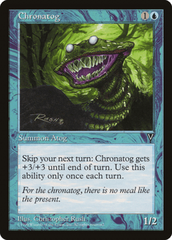 {0}: This creature gets +3/+3 until end of turn. You skip your next turn. Activate only once each turn.