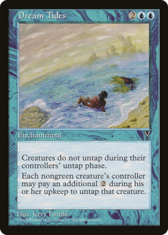 Creatures don't untap during their controllers' untap steps. At the beginning of each player's upkeep, that player may choose any number of tapped nongreen creatures they control and pay {2} for each creature chosen this way. If the player does, untap those creatures.