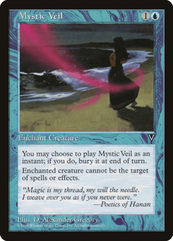 You may cast this spell as though it had flash. If you cast it any time a sorcery couldn't have been cast, the controller of the permanent it becomes sacrifices it at the beginning of the next cleanup step. Enchant creature Enchanted creature has shroud. (It can't be the target of spells or abilities.)