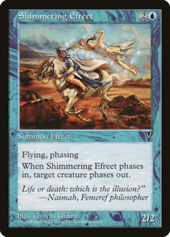 Flying {U}{U}: This creature phases out. (While it's phased out, it's treated as though it doesn't exist. It phases in before you untap during your next untap step.)