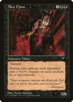 Trample At the beginning of your upkeep, put a +1/+1 counter on each creature each opponent controls.