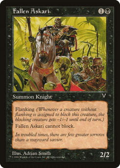 Flanking (Whenever a creature without flanking blocks this creature, the blocking creature gets -1/-1 until end of turn.) This creature can't block.