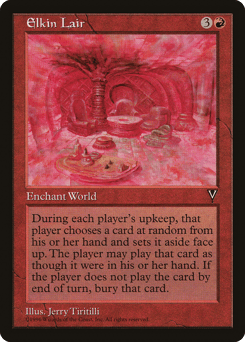 At the beginning of each player's upkeep, that player exiles a card at random from their hand. The player may play that card this turn. At the beginning of the next end step, if the player hasn't played the card, they put it into their graveyard.