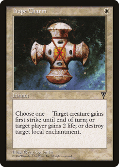 Choose one — • Target creature gains first strike until end of turn. • Target player gains 2 life. • Destroy target Aura.