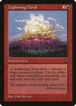 Whenever a player casts a red spell, you may pay {R}. If you do, this enchantment deals 1 damage to any target.