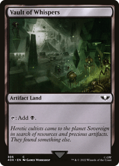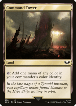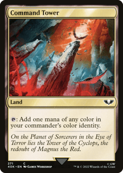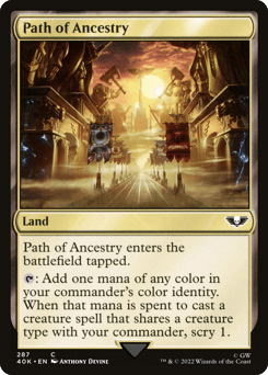This land enters tapped. {T}: Add one mana of any color in your commander's color identity. When that mana is spent to cast a creature spell that shares a creature type with your commander, scry 1. (Look at the top card of your library. You may put that card on the bottom.)