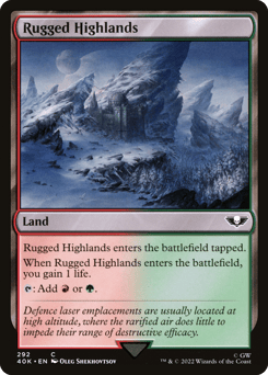 This land enters tapped. When this land enters, scry 1. (Look at the top card of your library. You may put that card on the bottom.) {T}: Add {R} or {G}.