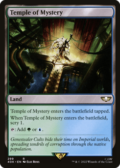 This land enters tapped. When this land enters, scry 1. (Look at the top card of your library. You may put that card on the bottom.) {T}: Add {G} or {U}.