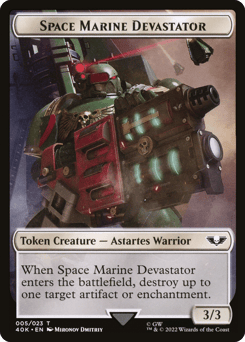 When Space Marine Devastator enters the battlefield, destroy up to one target artifact or enchantment.