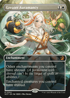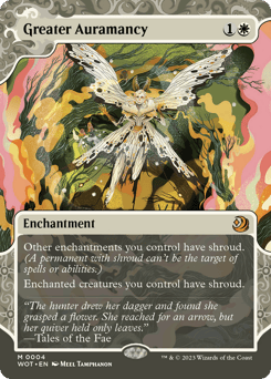 Other enchantments you control have shroud. (A permanent with shroud can't be the target of spells or abilities.) Enchanted creatures you control have shroud.