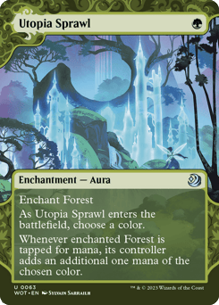 Enchant Forest As this Aura enters, choose a color. Whenever enchanted Forest is tapped for mana, its controller adds an additional one mana of the chosen color.