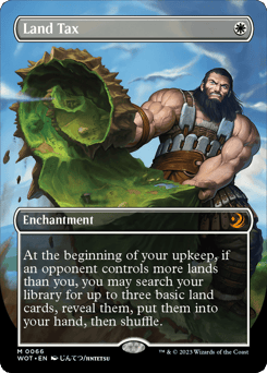 At the beginning of your upkeep, if an opponent controls more lands than you, you may search your library for up to three basic land cards, reveal them, put them into your hand, then shuffle.