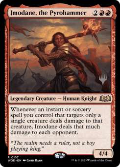 Whenever an instant or sorcery spell you control that targets only a single creature deals damage to that creature, Imodane deals that much damage to each opponent.