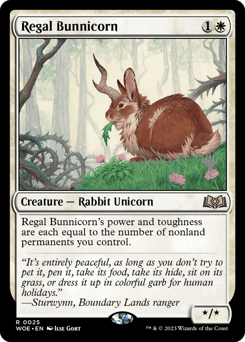Regal Bunnicorn's power and toughness are each equal to the number of nonland permanents you control.
